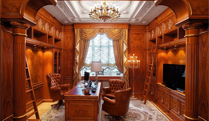 Пожалуй, самое сложное в оформлении дворцов начала XXI века — соединить элементы классического стиля с современным оборудованием и коммуникациями. Кондиционеры, теплые полы, слаботочные системы, пожарная сигнализация — со всем этим никогда не сталкивались ни Ванбру, ни Растрелли. В нынешних условиях архитектору приходится согласовывать, учитывать, разводить, «компактно упаковывать», а различного рода украшательства как самое приятное оставлять на десерт.