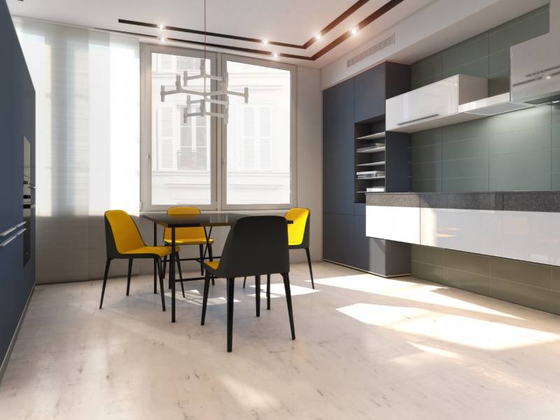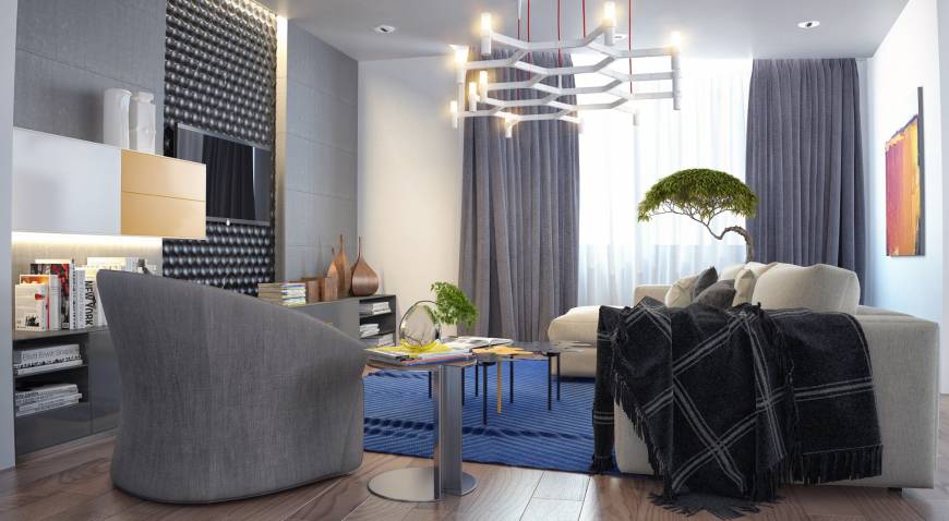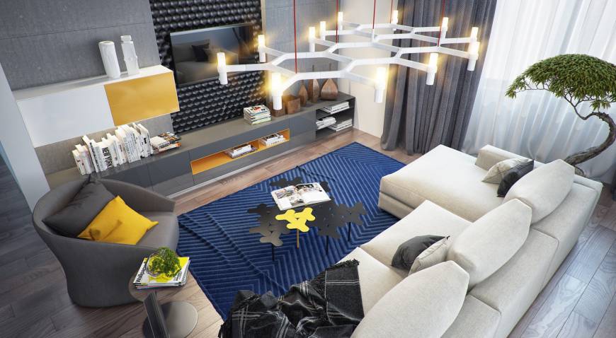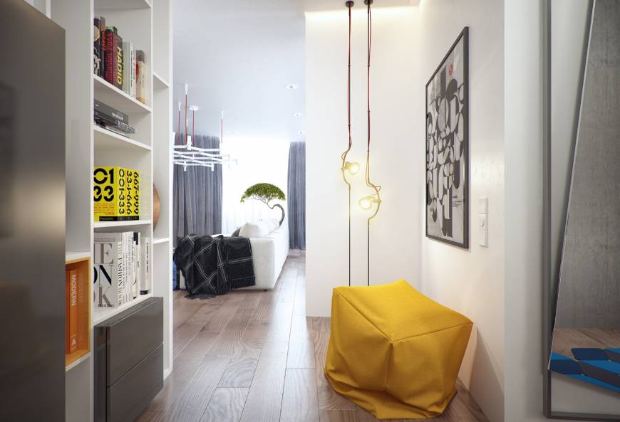 Площадь квартиры, оформленной студией Ruslan Kovalchuk, составляет 75 кв. метров. Интерьер интересен оригинальным сочетанием цветов. Дизайнеры потрудились над тем, чтобы правильно организовать пространство. В результате получилось функциональное, но визуально незагроможденное пространство.