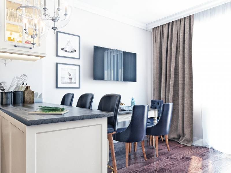 Эта квартира площадью 107 кв. метра принадлежит семье, состоящей из двух взрослых и одного ребенка. Хозяин дома в ремонт не вмешивался, он полностью доверил оформление своего жилища дизайнерам и жене. Мужчина выказал единственное пожелание - темный паркет на полу в гостиной. Стиль был выбран классический, а цвета светлые - такой интерьер не надоедает годами.