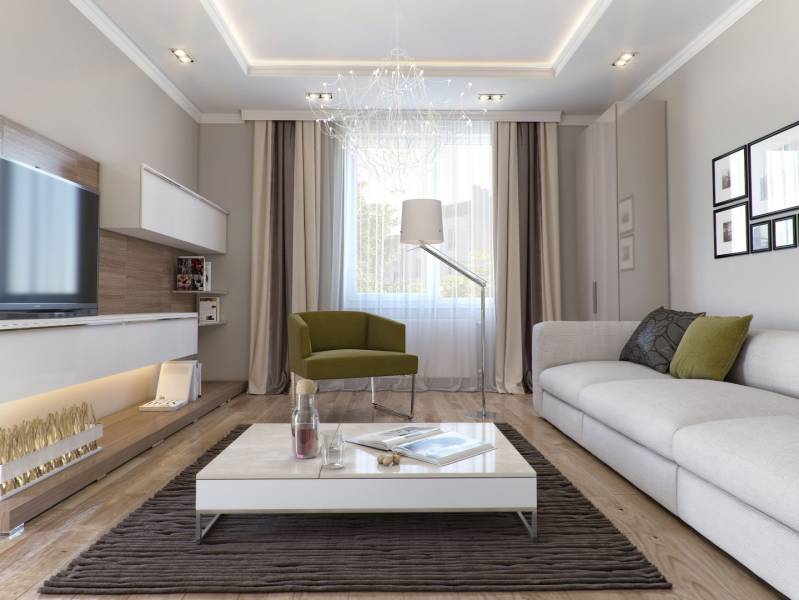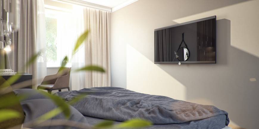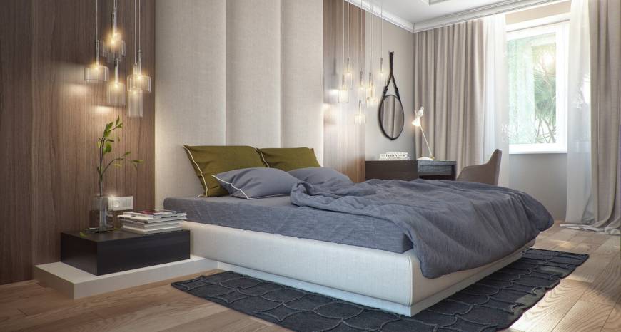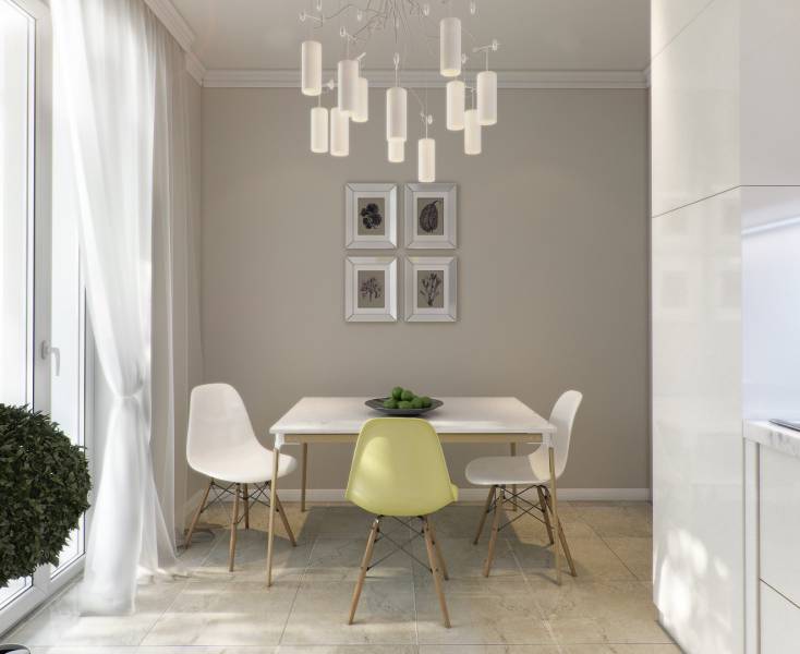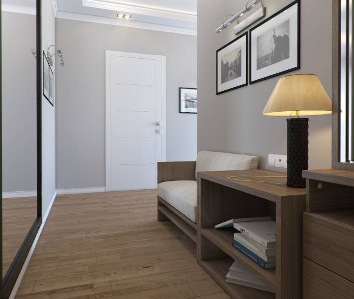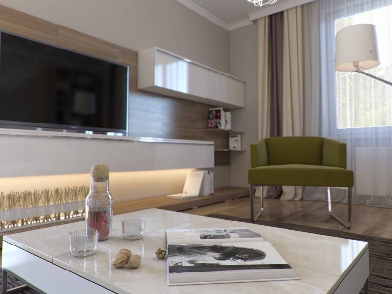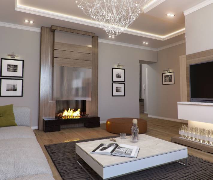 Эта квартира площадью 82 кв. метра в киевской новостройке принадлежит молодому холостяку. Хозяин попросил под кухню-столовую выделить небольшое помещение, на гостиной и спальне не экономить пространство. Также его пожеланием было выделить одну комнату под гардеробную, чтобы одежда там размещалась свободно и не мялась. Цвета для оформления были выбраны спокойные. Интерьер получился по-мужски сдержанным, но не аскетичным. Поскольку деталей в нем хватает. Хотя дизайнеры следили за тем, чтобы декора было немного, поскольку мужчины не слишком приветствуют интерьерные украшения. Центральной частью всего проекта стал биокамин.