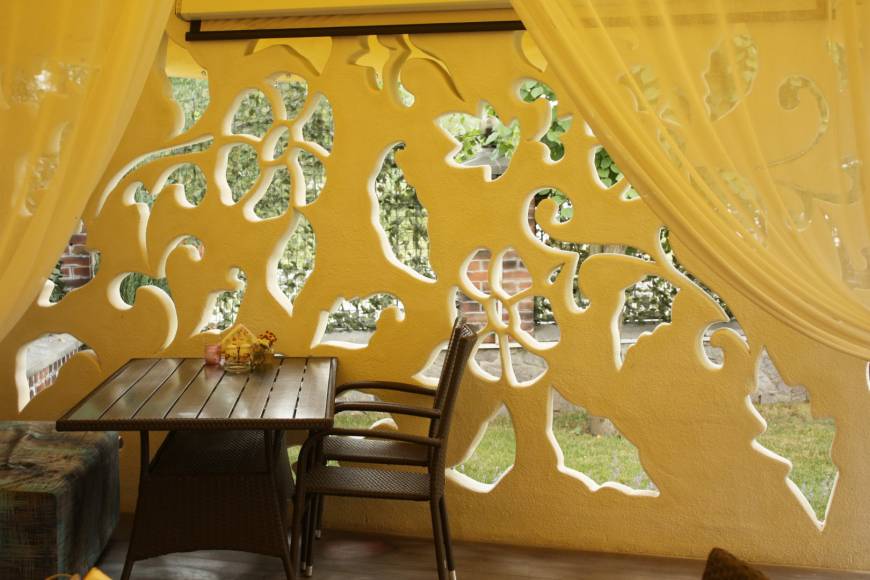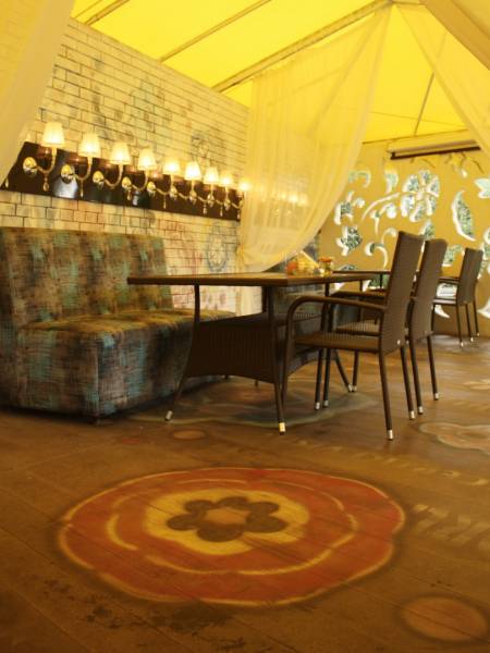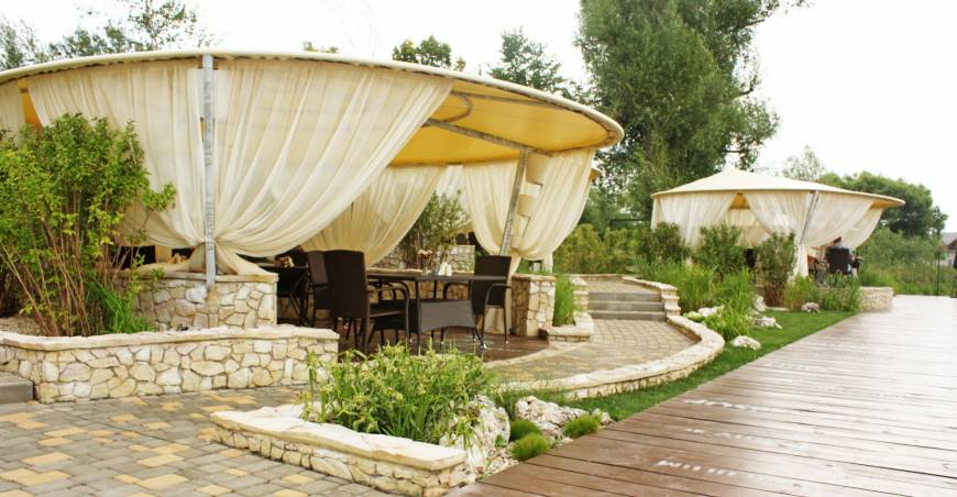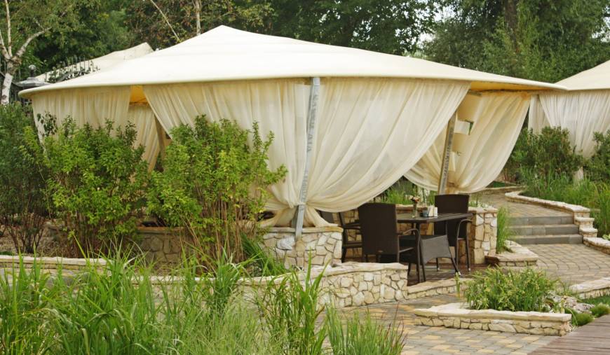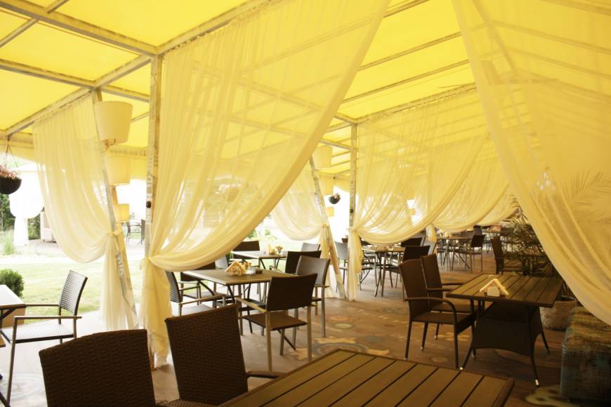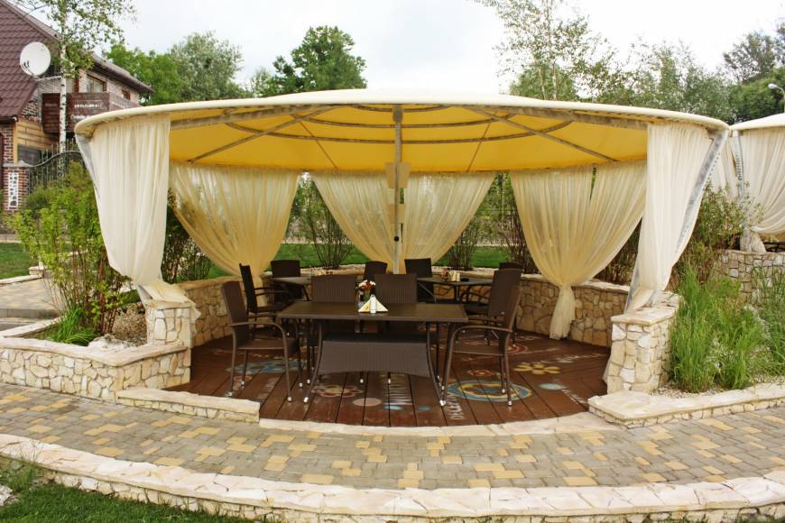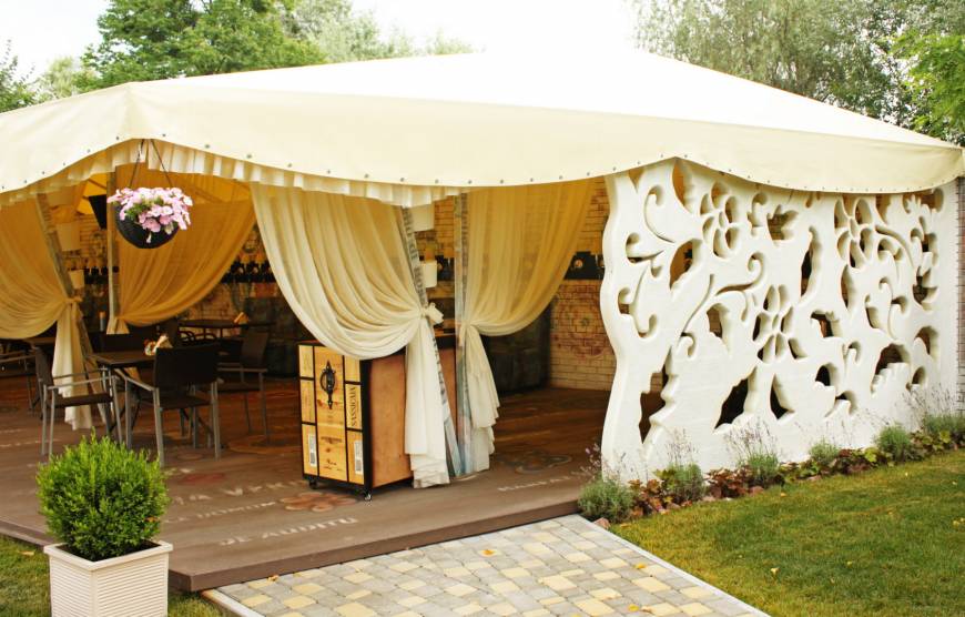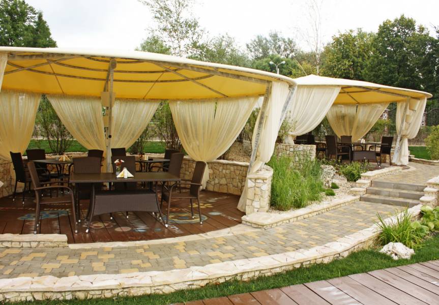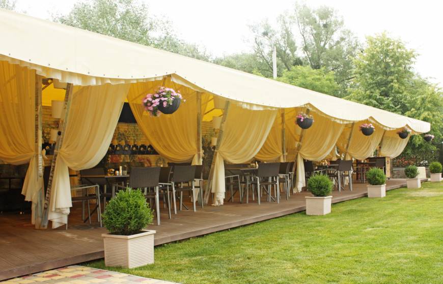 - крытый шатёр с большим количеством посадочных мест (здесь хорошо проводить праздники, требующие большого количества гостей);