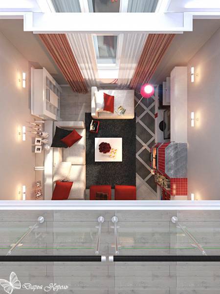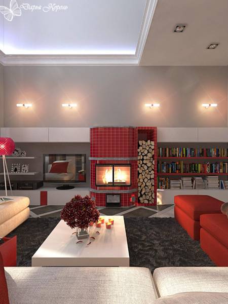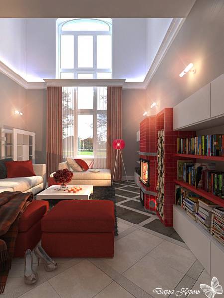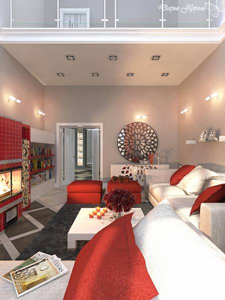 Двухярусная гостиная с камином