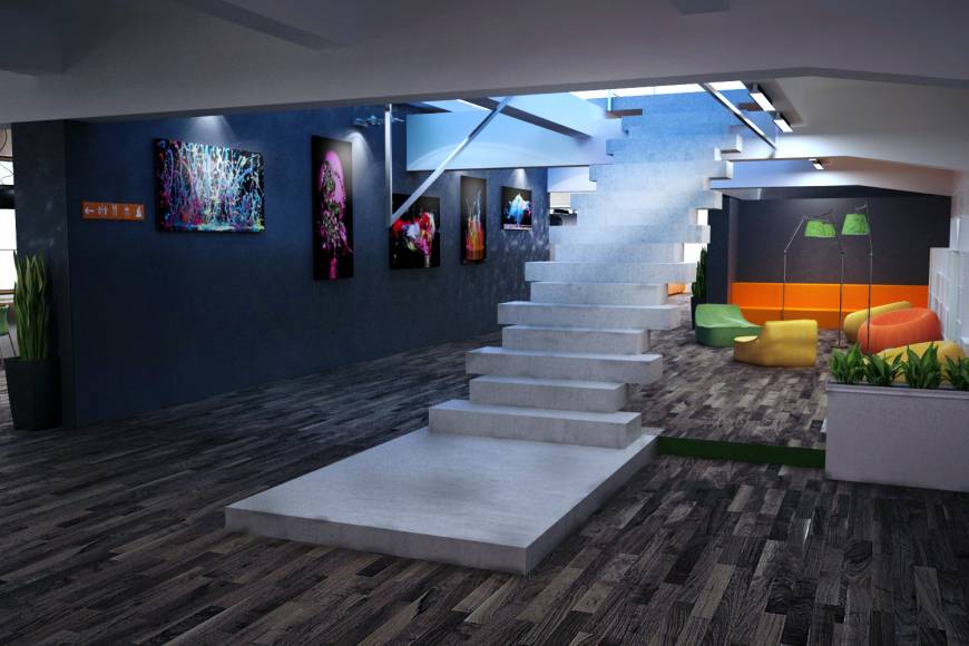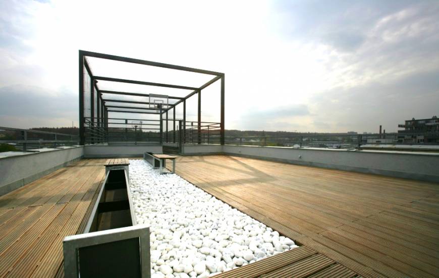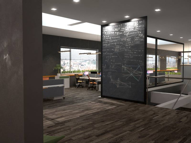 Офис IT компании "Inatek" расположенной в г. Прага. Офис на 2-а этажа с террасой на крыше. На первом этаже зона отдыха, переговорные, места для уединенной работы, библиотека, кухня, санузел с душевыми. На втором этаже openspace, кабинеты директора и руководителей отделов.