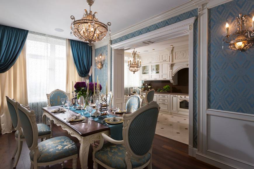 И покупая такое жильё, клиенты прежде всего намерены были обустроиться в том же стилистическом характере и выделяя необходимую для жизни большую двузонную гостиную и функционально-практичную кухню в тесном соседстве с нарядной столовой.