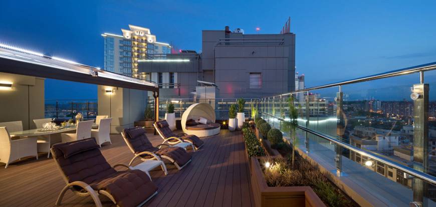 И конечно же террасы …Это особая гордость собственников –утренняя-восточная с видом на золотые купола Лавры, обеденно-вечерняя лаунж зоны. Все это стало возможно, благодаря кардидальным изменениям внесенных в первичную архитектуру.