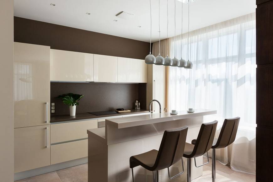 Особенностью данного проекта является сохранение максимального количества света, который проникает через панорамные окна.