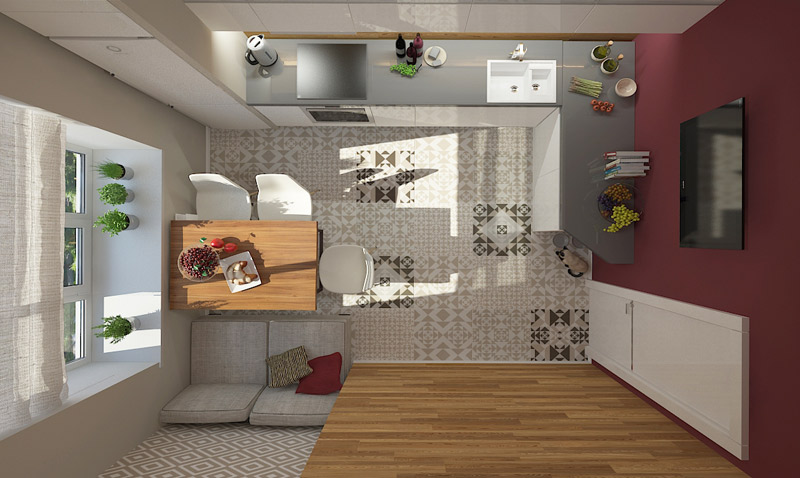 спальня, гостиная, кухня