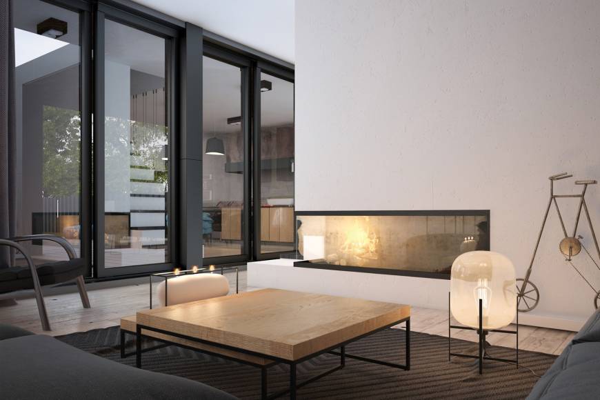 Двухярусная гостиная с камином