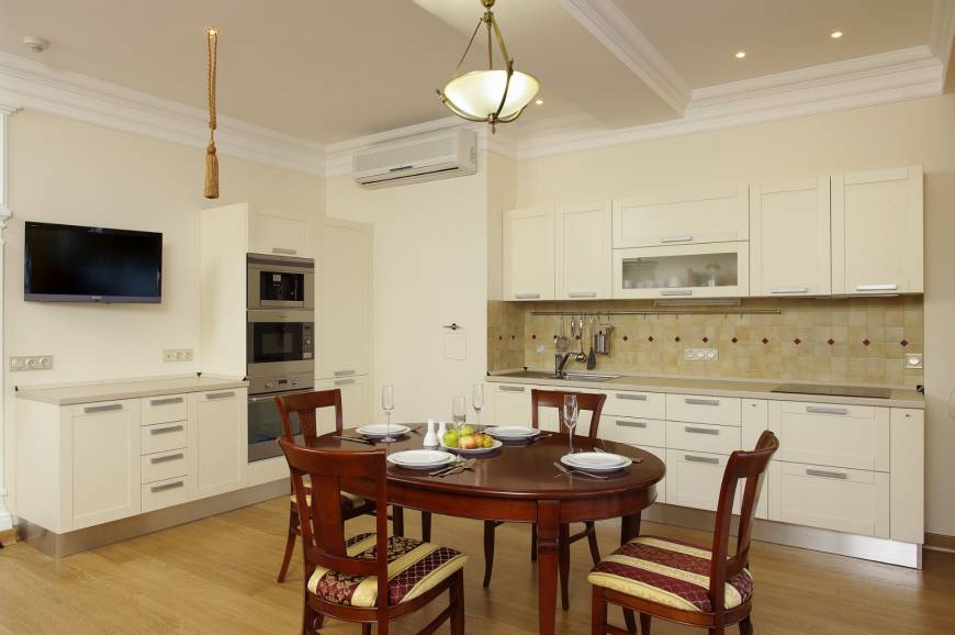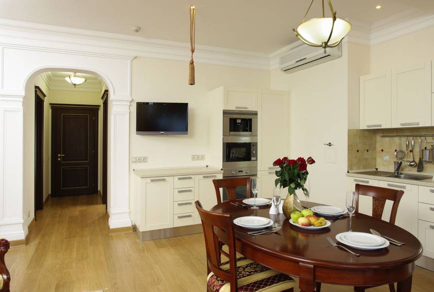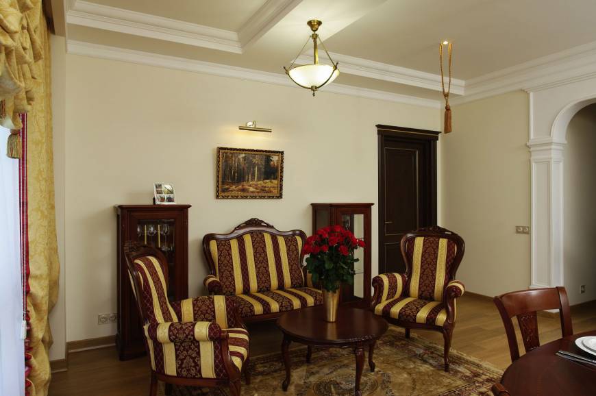 Жилые апартаменты. г.Ялта. Квартира выполнена в образе гостиничного номера. Это требование заказчика связано с тем, что он много путешествует и гостиничный дух ему по вкусу.