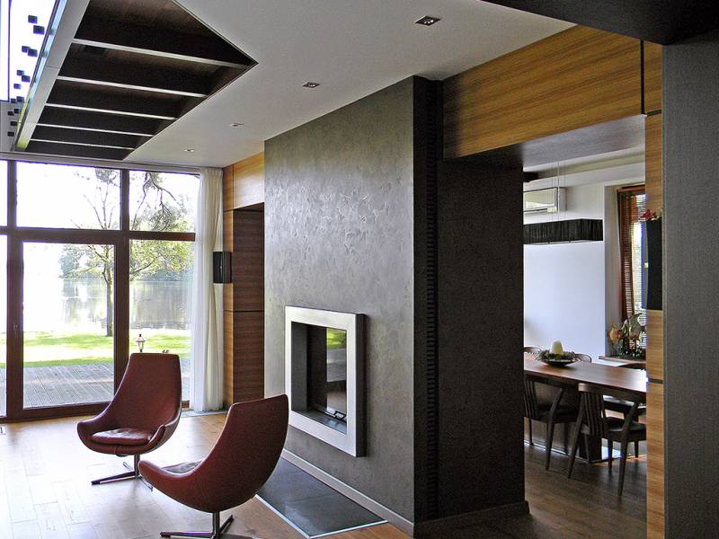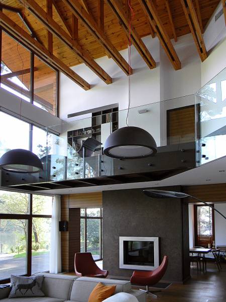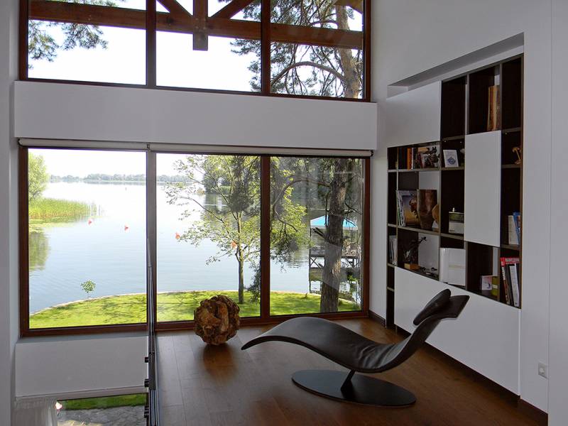 Большая удача для дизайнера получить возможность поработать над объектом с таким потенциалом. Дом расположен прямо на берегу Днепра, находясь внутри которого, тебя не покидает ощущение, что ты плывешь по реке «в буквальном смысле слова». Вокруг тебя только природа, никакой суеты, а из окна открывается вид «на миллион долларов».