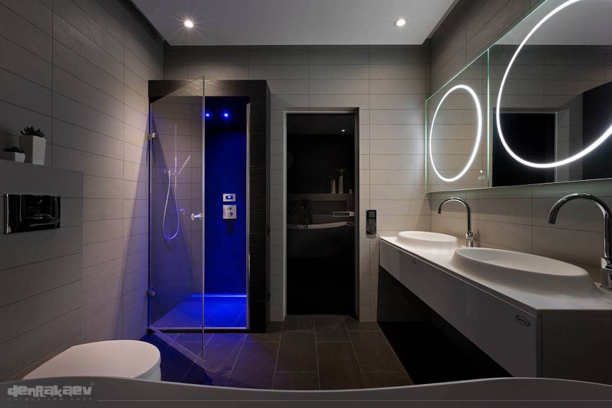 Интерьер должен восприниматься единым и монолитным – это основная идея проекта. Войдя в любое из помещений, будь то столовая, или ванная, человек должен понимать, что он находится в одной из зон одного общего пространства, поэтому интерьер выполнен в едином ключе, как стилистически, так и по цветовой гамме. Моей целью было создать интерьер, в котором нет ни одной случайной линии, интерьер, лёгкий для визуального восприятия и комфортный для жизни – именно эти качества интерьера, на мой взгляд, делают его по-настоящему дорогим.