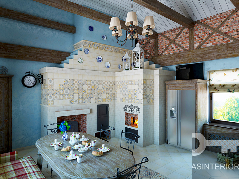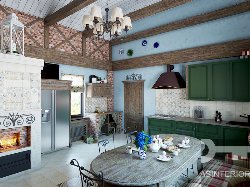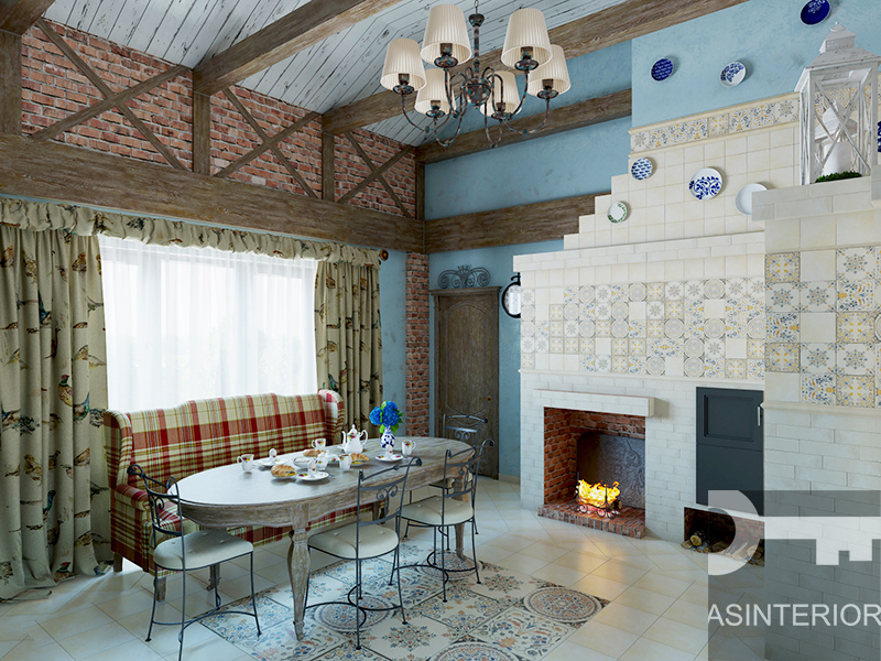 Этот дачный домик, выполненных в охотничьем стиле. Он имеет свою открытую террасу с камином и является местом отдыха в саду, вдали от основного дома.