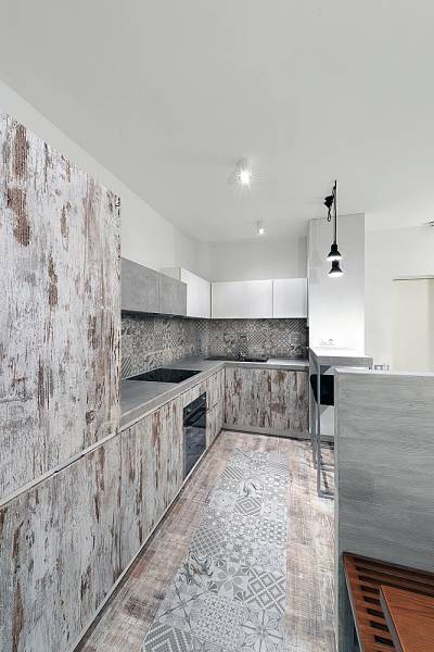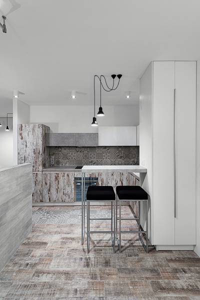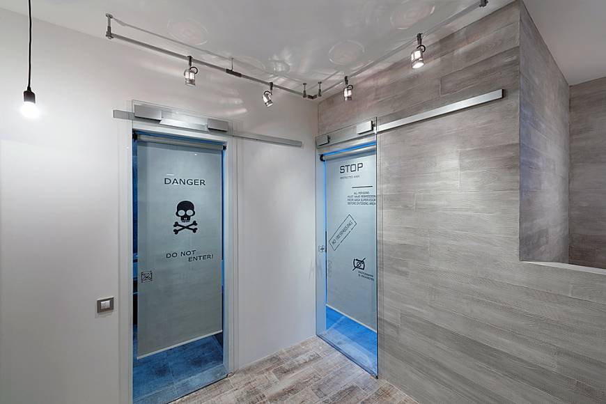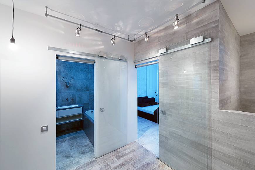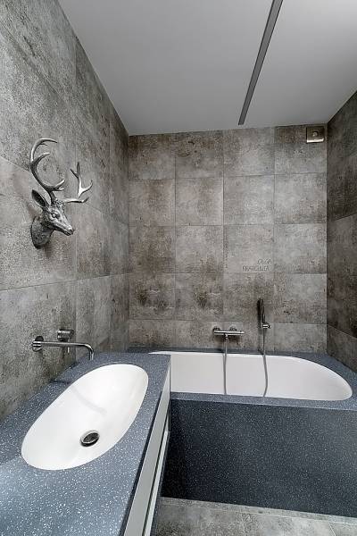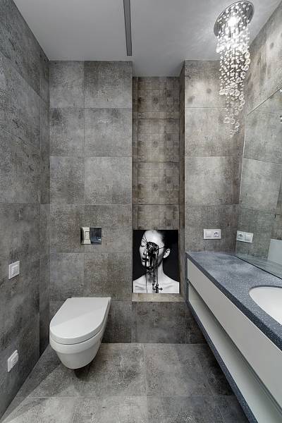 Особая уникальность этого интерьера в богатой колористике различных оттенков серого, что и определило его название. Если говорить о моде, то здесь соединились несколько трендов этого года: чистые простые линии, натуральные цвета, индустриальность и пэчворк. Если говорить о функции, то главной темой проекта стала идея создания максимально открытого пространства, с возможностью отделения приватных зон. Компромиссом между открытостью и приватностью стала идея использования стеклянных раздвижных дверей и штор с электроприводом, которые позволяют полностью отгородить пространство, при необходимости. Это создает возможность гибко регулировать полную открытость и надежную приватность этих зон.