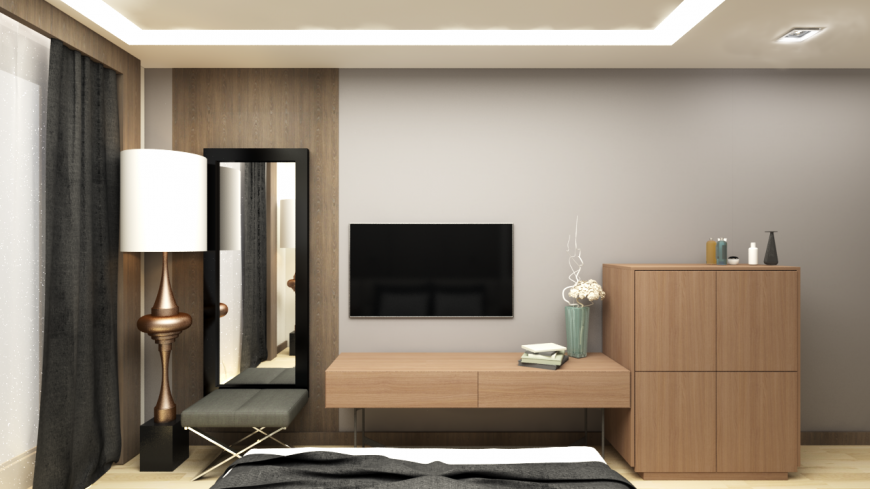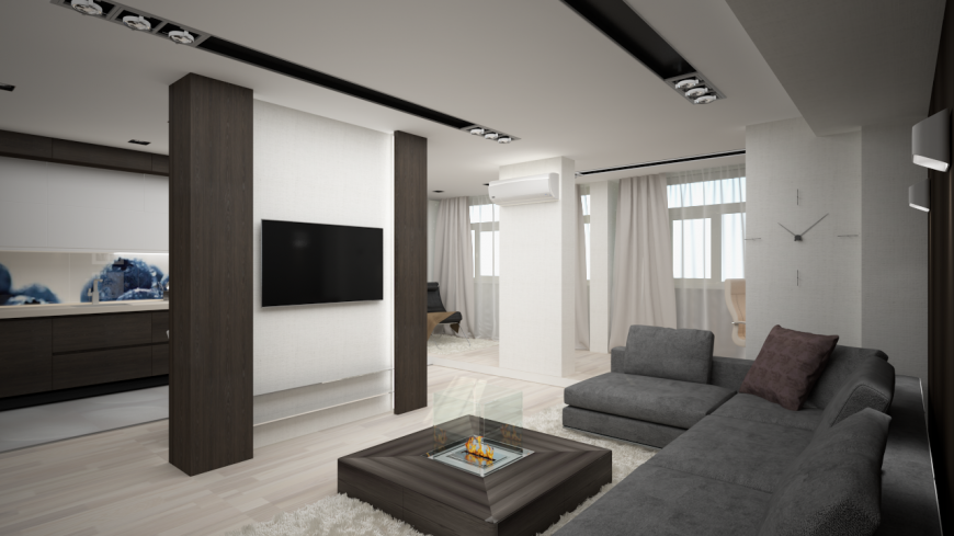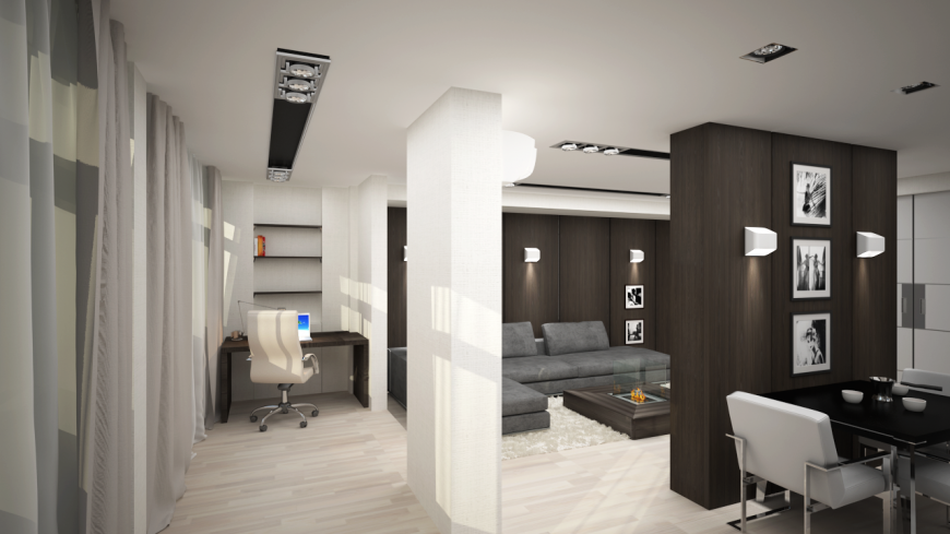 Проект разрабатывался для молодого делового человека, который отдает предпочтение предметам строгих форм, четких линий, натуральным материалам.Интерьеру, который будет исполнен в современном стиле, с элементами минимализма, но не лишен домашнего уюта и деловой обстановки.