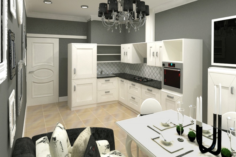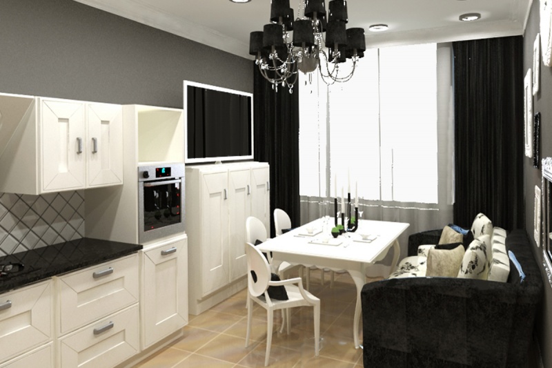 Квартира в стиле современной классики. Благородный контраст цветового решения подчёркивает функциональность и динамику пространства. Декоративные элементы являются акцентами, задающими атмосферу лёгкого, мерцающего гламура.