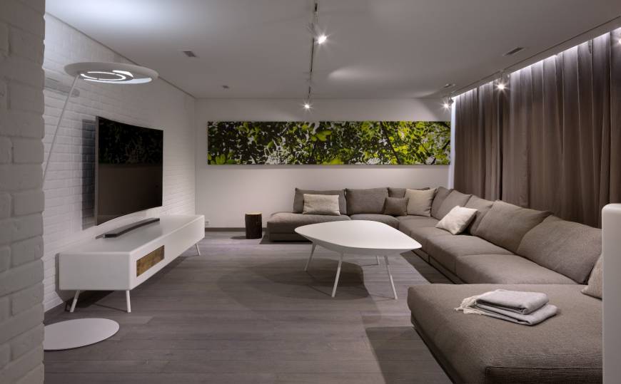 решенную как полноценная жилая комната; и гостиную/chill-out/кинотеатр со своей