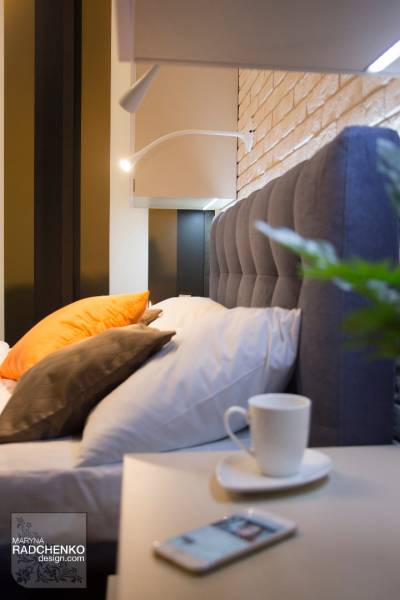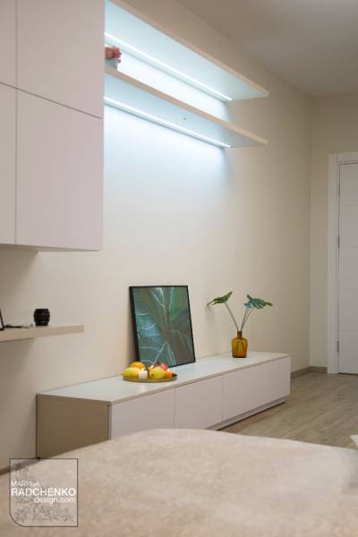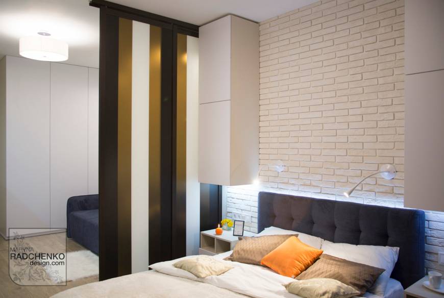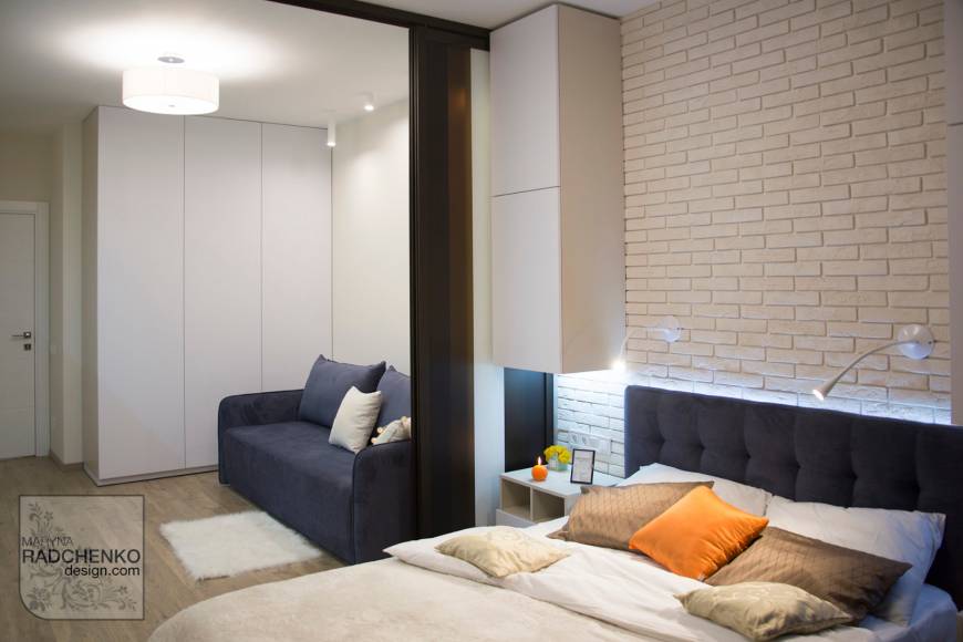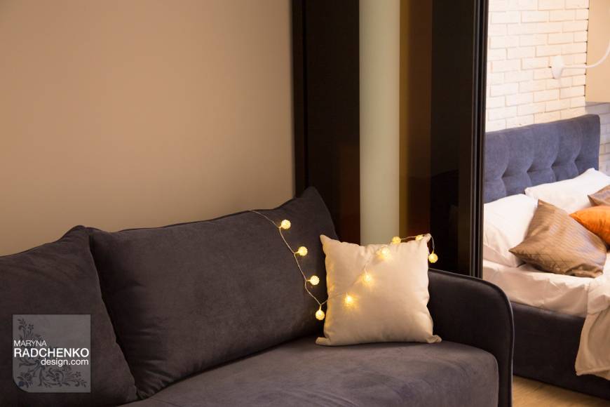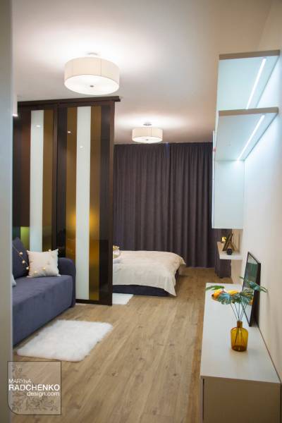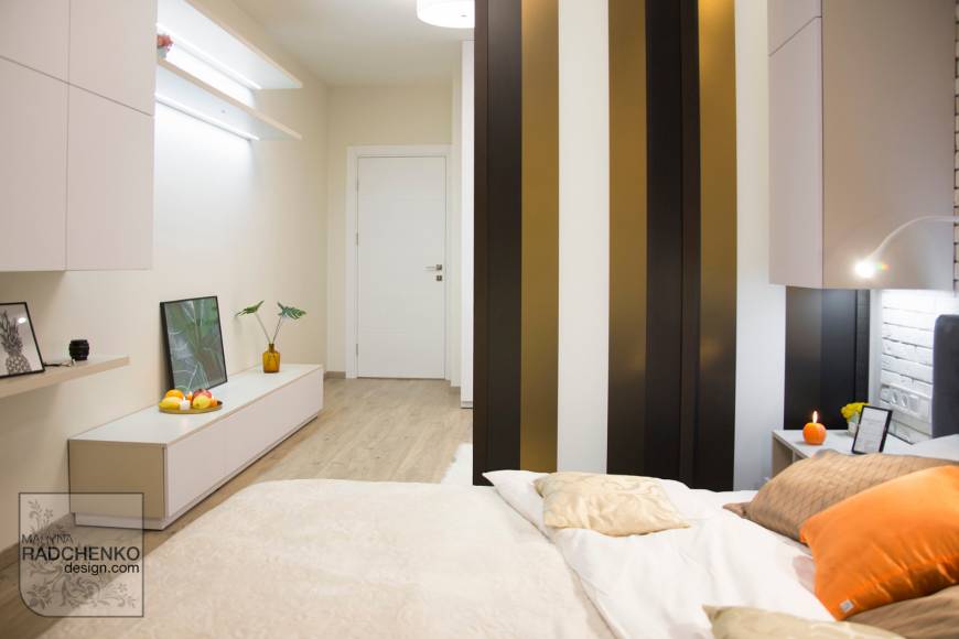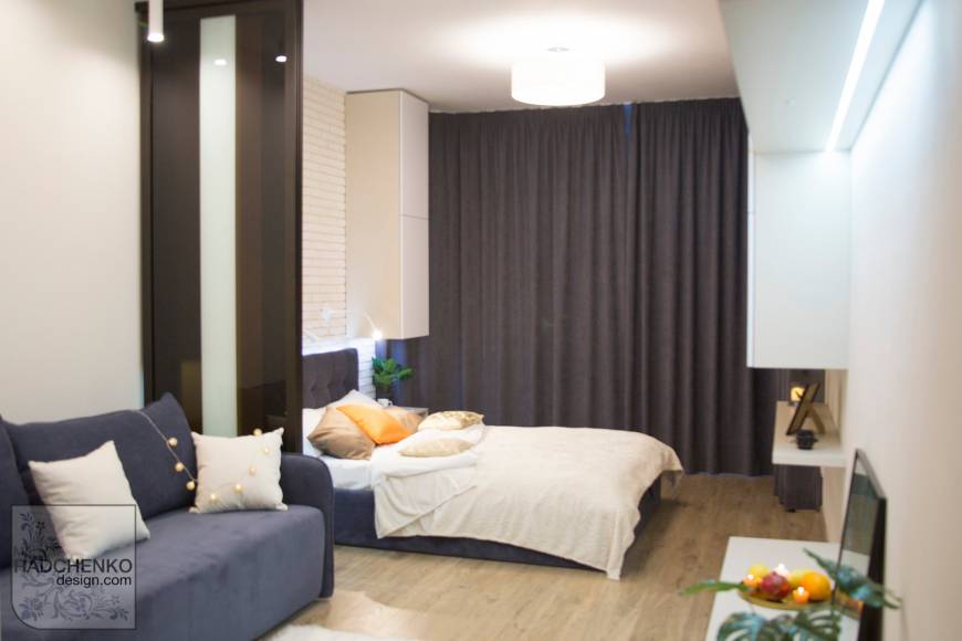 Линейная планировка : спальня - гостиная - ванная - кухня
