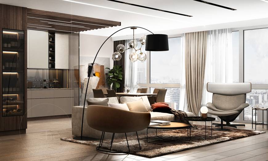 Проект 3-х комнатной квартиры разработан в современном стиле для молодой