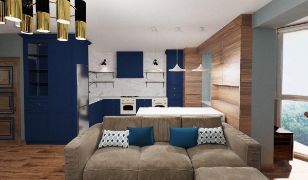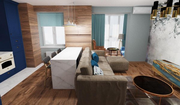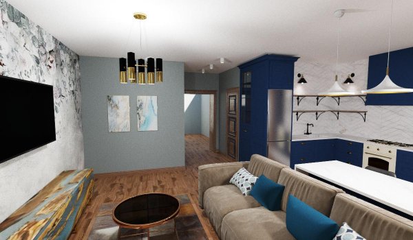 Трьохкімнатна квартира, що була створена в наслідок об’єднання 2-х однокімнатних кварти. Стилістика квартири поєднання сучасного стилю та класики.