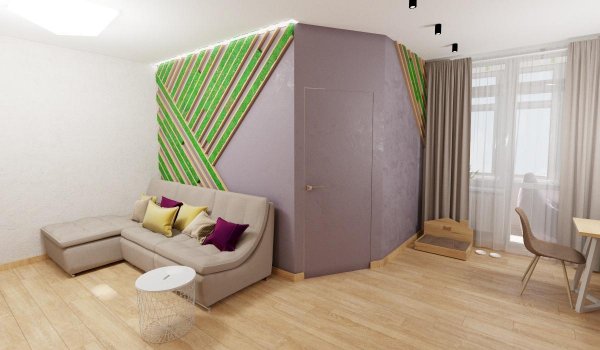 Квартира-студія для молодої дівчини, прибічниці екологічних матеріалів.