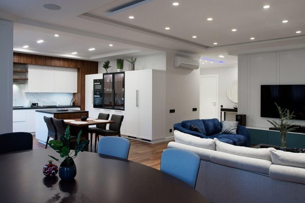 - гостиная, кухня, кабинет, ванная, спальня