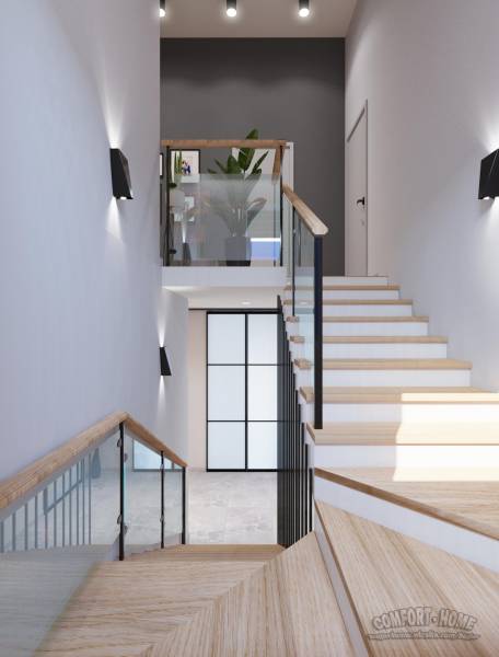 Дизайн проект двухэтажного дома оказался достаточно интересным. Нам пришлось работать с помещениями, где не было перегородок и была возможность делать планировку так, как этого хотел заказчик. Комнаты получились просторные и светлые. Современный дизайн с минимальным количеством мебели и декора сделал домик практичным и уютным. Было продумано функциональные зоны для удобств всех проживающих в этом доме. Детские комнаты очень понравились новым хозяевам и были оценены с первого раза. Наличие всего необходимого оборудования, что стоит на своем месте позволяет без труда выполнять все работы по дому. Проект очень понравился моим заказчикам. И это свидетельствует их отзыв: