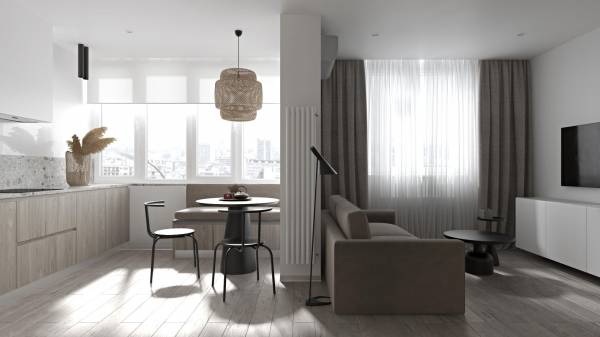 Задача была создать относительно недорогой, и современный интерьер, в котором будет уютно жить. Квартира изначально планировали под аренду.