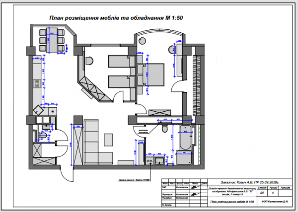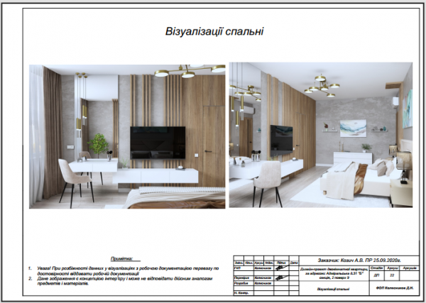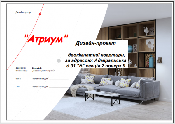Дизайн-проект двокімнатної квартири, за адресою: Адміральська д.31 "Б" секція 2.