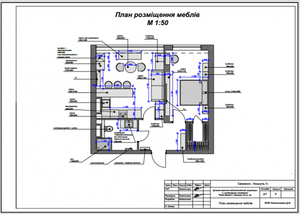 - виконання можливих варіантів планувальних рішень. (план встановлення перегородок, розташування меблів та обладнання)